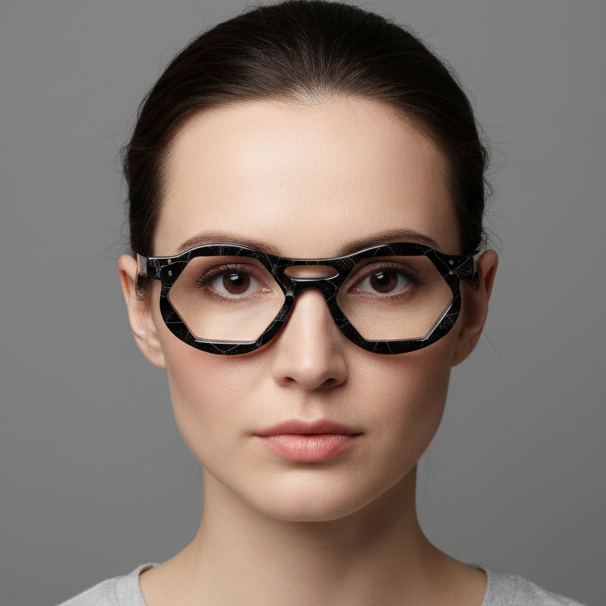 The Sh1-2 delivers distinctive geometric appeal with its octagonal lens design, commanding attention through bold architectural lines. Crafted in deep black with intricate lace detailing, the frame balances edginess with refined craftsmanship. Burgundy accents provide a sophisticated pop of color, elevating the overall aesthetic. This eclectic piece bridges contemporary and vintage sensibilities, ideal for those seeking eyewear that transcends conventional style boundaries and makes a confident statement.
