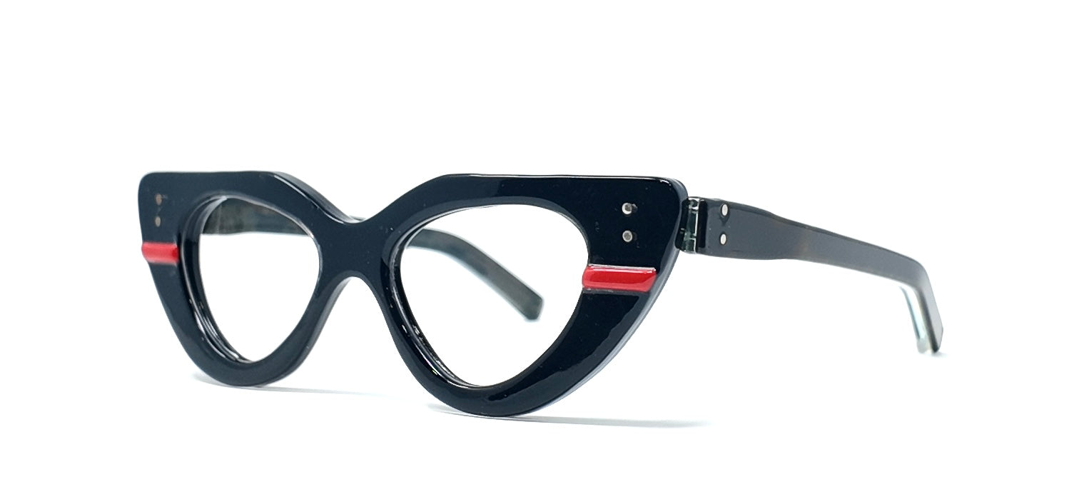 Introducing the A-AATH1BR, a stylish Mini Cateye in Italian Acetate. This chic design features a combination of black and red, accented with dark tortoise temples. The frame measures 48-19-145, providing a comfortable fit for everyday wear. Elevate your look with this must-have accessory.