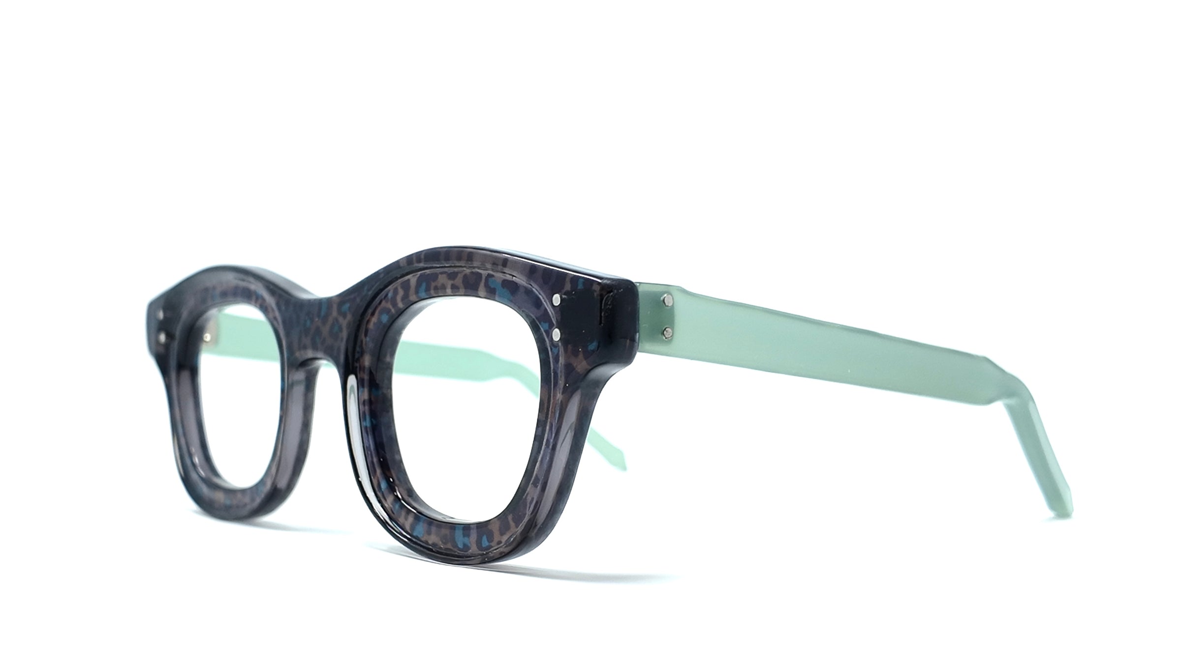Crafted from premium Italian acetate, this mid-sized frame delivers sophisticated style with a striking dark leopard pattern accented by vibrant teal details. The 47-21-145 measurements ensure a comfortable fit for most face shapes. This design balances bold aesthetics with refined craftsmanship, making it an ideal choice for those seeking distinctive eyewear that commands attention without compromising on quality or wearability.