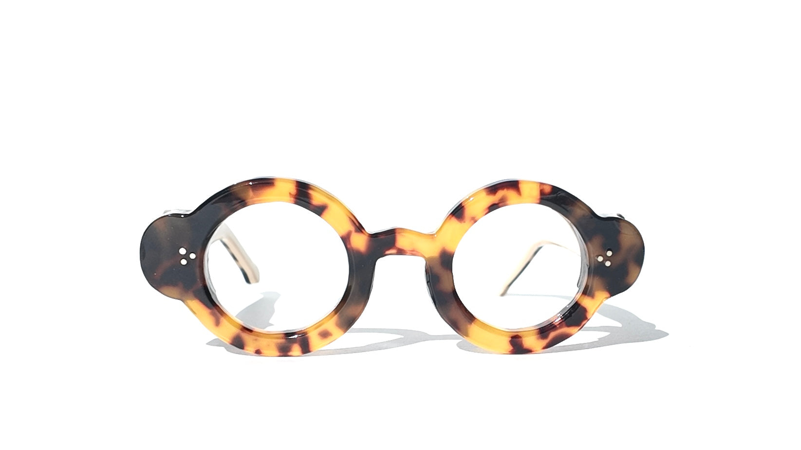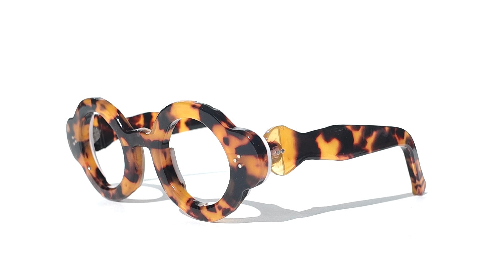Expertly crafted from Italian acetate, the A-Aab2 delivers a bold oversized circular silhouette with distinctive cutout details that set it apart. Havana tortoiseshell paired with teal accents creates a sophisticated color story, while the 46-19-145 fit ensures comfort across a range of face shapes. A refined statement frame for those who value design precision and timeless appeal.