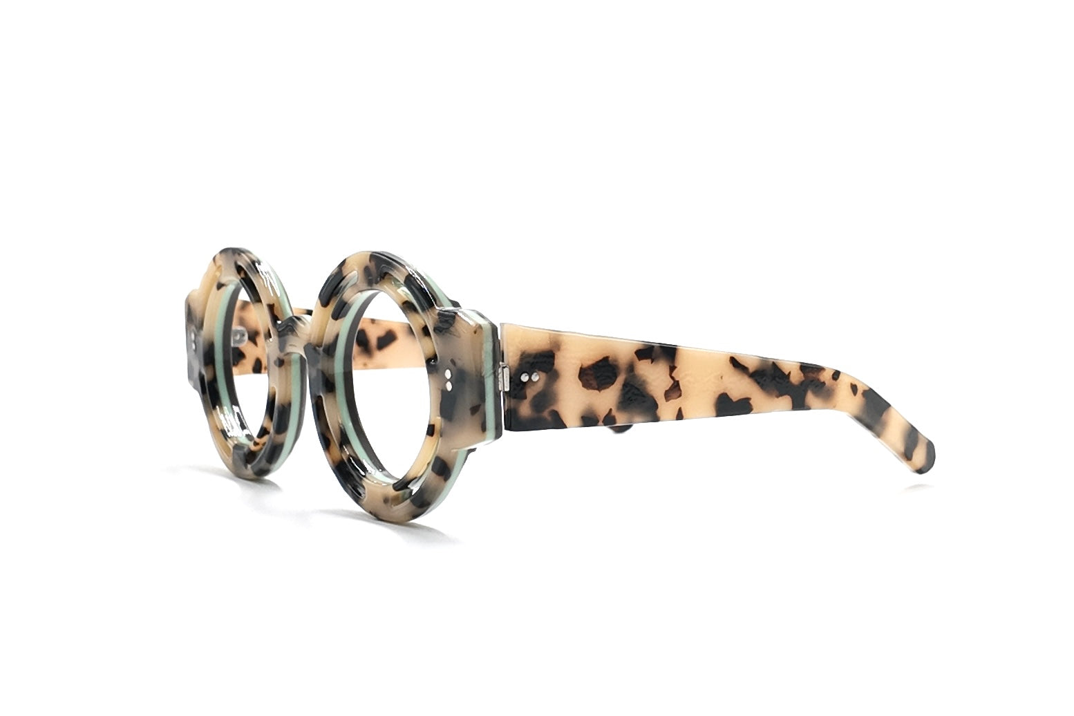 Expertly crafted with Italian acetate, this A-Aab2 frame boasts a bold oversized circle design and unique cutouts for a modern twist. The Havana and teal accents add a pop of color, while the 46-19-145 measurements ensure a comfortable fit. Elevate your style with this statement piece.