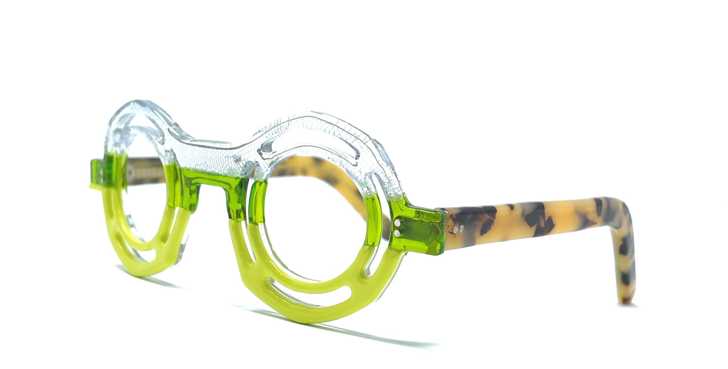 Introducing our eclectic three-tone eyeglass frame, a sophisticated blend of lime and mono green hues enhanced with an infused mesh design. The distinctive tan havana scent adds an unexpected sensory dimension to your eyewear experience. Precision-engineered with measurements of 40-25-145, these frames offer an optimal fit for diverse face shapes. The innovative material composition combines aesthetic appeal with functional durability, making this frame an exceptional choice for discerning wearers who appreciate unconventional design elements and superior craftsmanship.