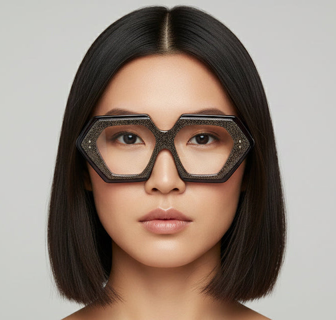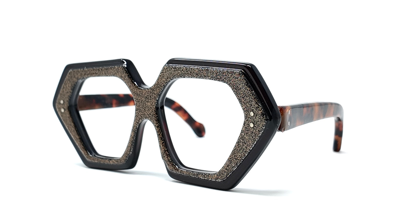 Expertly crafted with an oversized "retro frame" for a bold and trendy look. Featuring measurements of 48-19-145, this frame is designed to fit comfortably on a variety of face shapes and sizes. Accented with copper glitter and black and tortoise patterns, this frame is sure to make a statement. Upgrade your style with this unique and fashion-forward accessory.