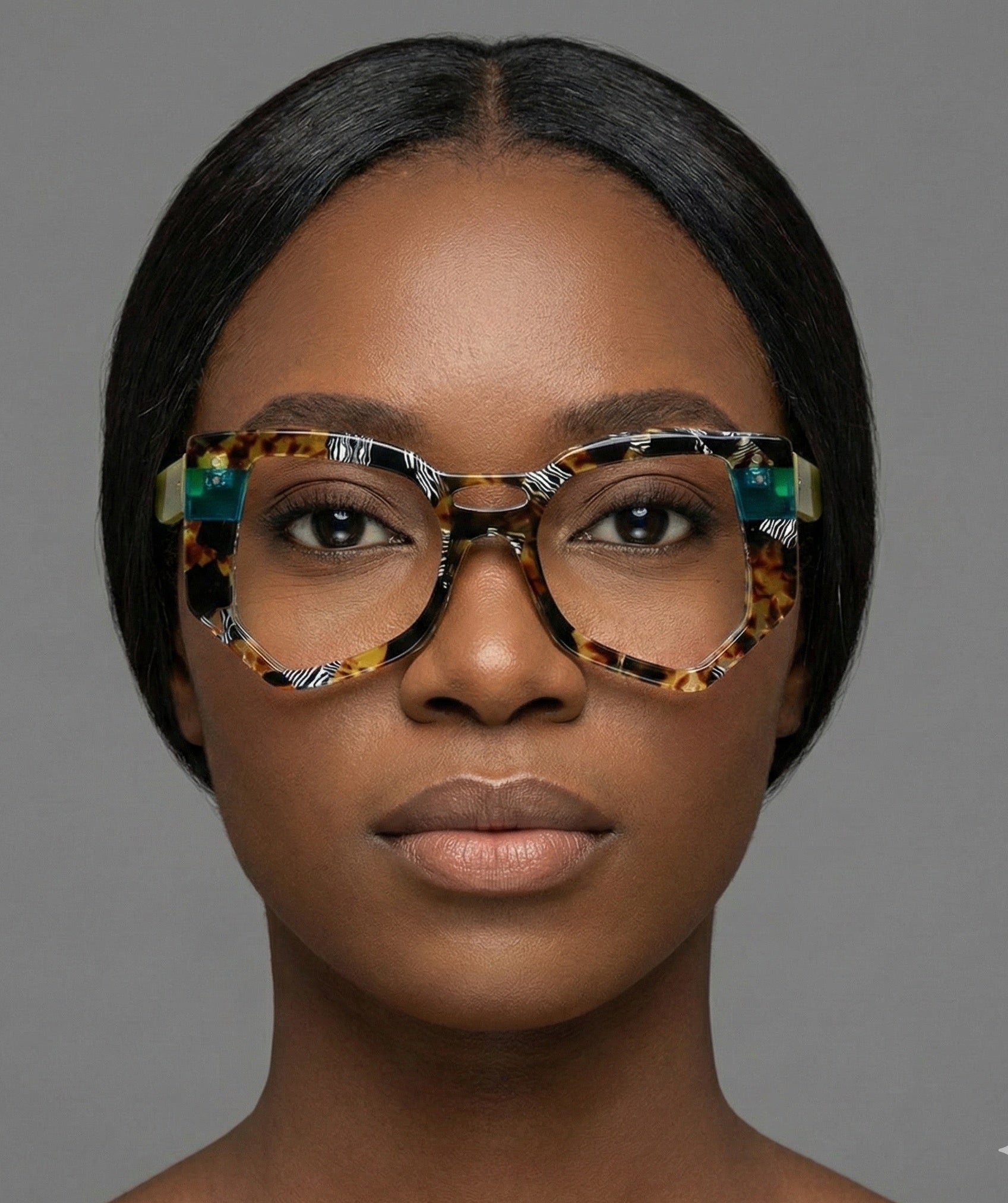 Experience style and comfort with the AA-ASRT eyewear. The oversized frame features a unique Congo print and mono teal accents, making it a fashionable accessory. With precise measurements of 48-20-145, this eyewear ensures a comfortable and secure fit. Elevate your look with 65 words of eyewear perfection.