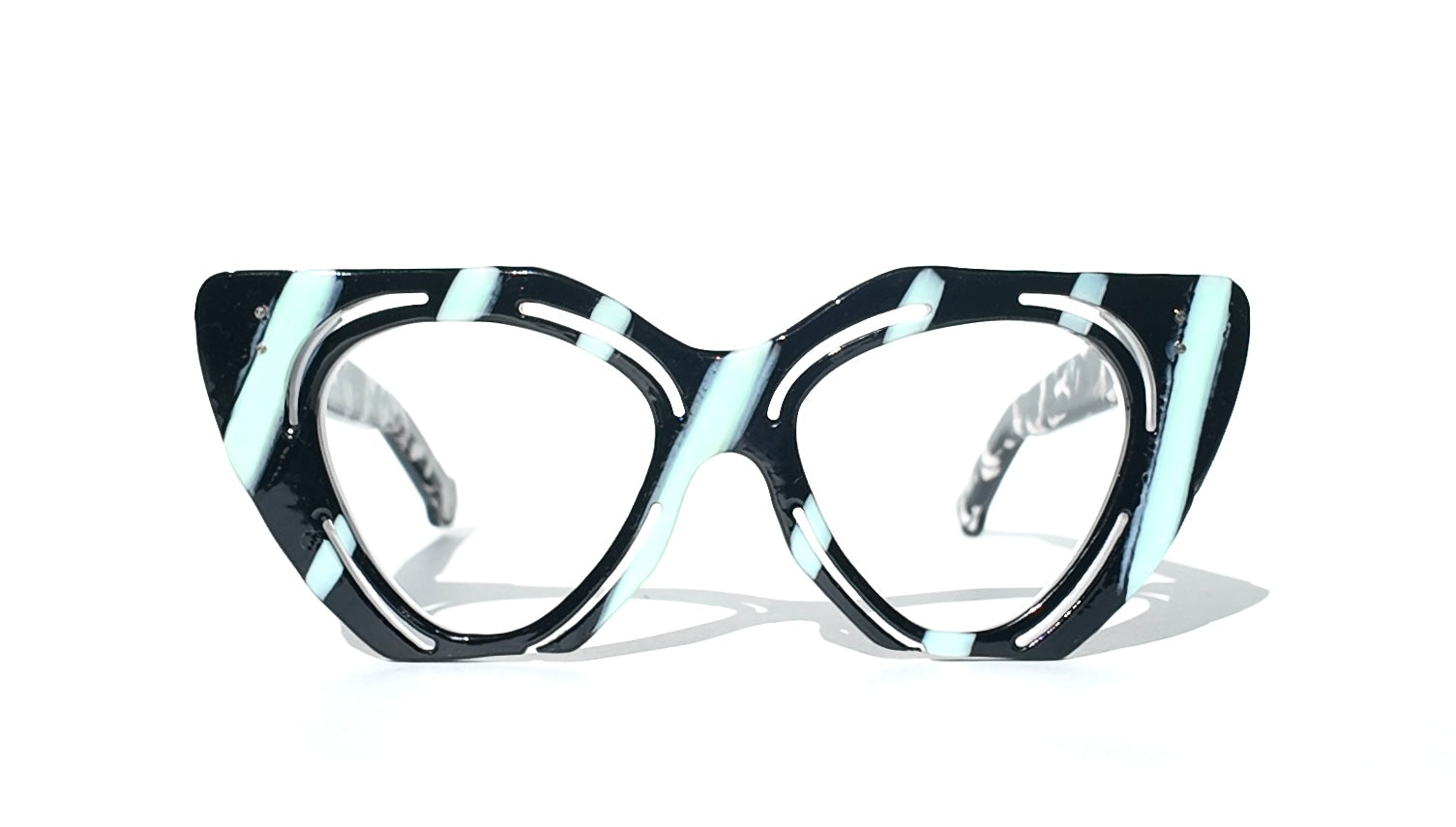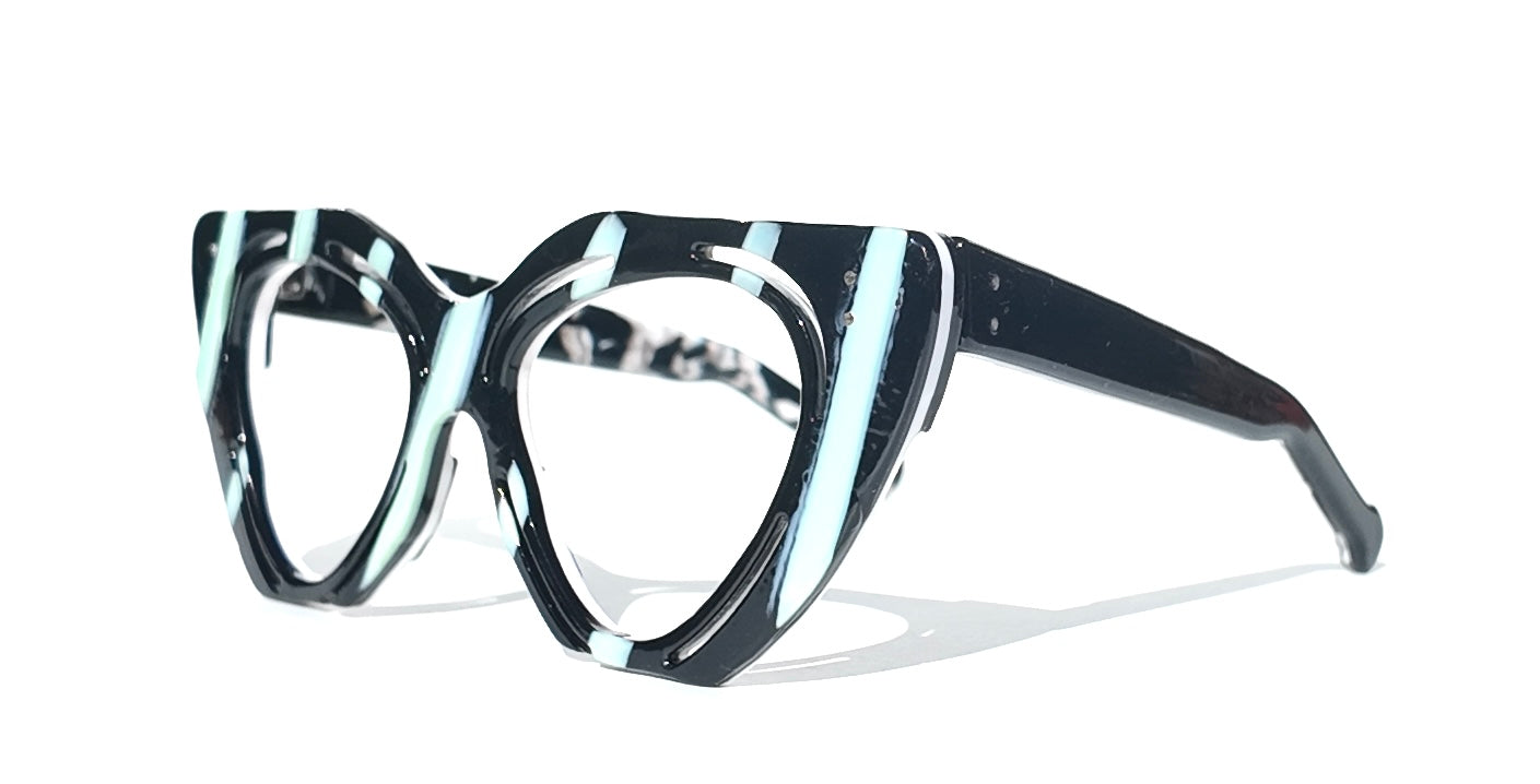 The AA-Th2 B delivers bold sophistication with its striking black frame and teal stripe detailing. Eclectic cutouts add architectural interest while maintaining clean lines. Sized at 49-19-145, this frame balances presence with wearability across diverse face shapes. The teal accent elevates the classic black palette, making it versatile enough for everyday wear yet distinctive enough to anchor a statement look. Premium construction ensures durability without compromise.